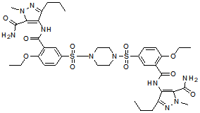 | 英文别名 | O-Desethyl-O-propyl Methisosildenafil;Propoxyphenyl aildenafil;9ZDR4HWG5E;Sildenafil analogue;Propoxyphenyl methisosildenafil;Q27273418;7H-Pyrazolo(4,3-d)pyrimidin-7-one, 5-(5-(((3R,5S)-3,5-dimethyl-1-piperazinyl)sulfonyl)-2-propoxyphenyl)-1,6-dihydro-1-methyl-3-propyl-, rel- |